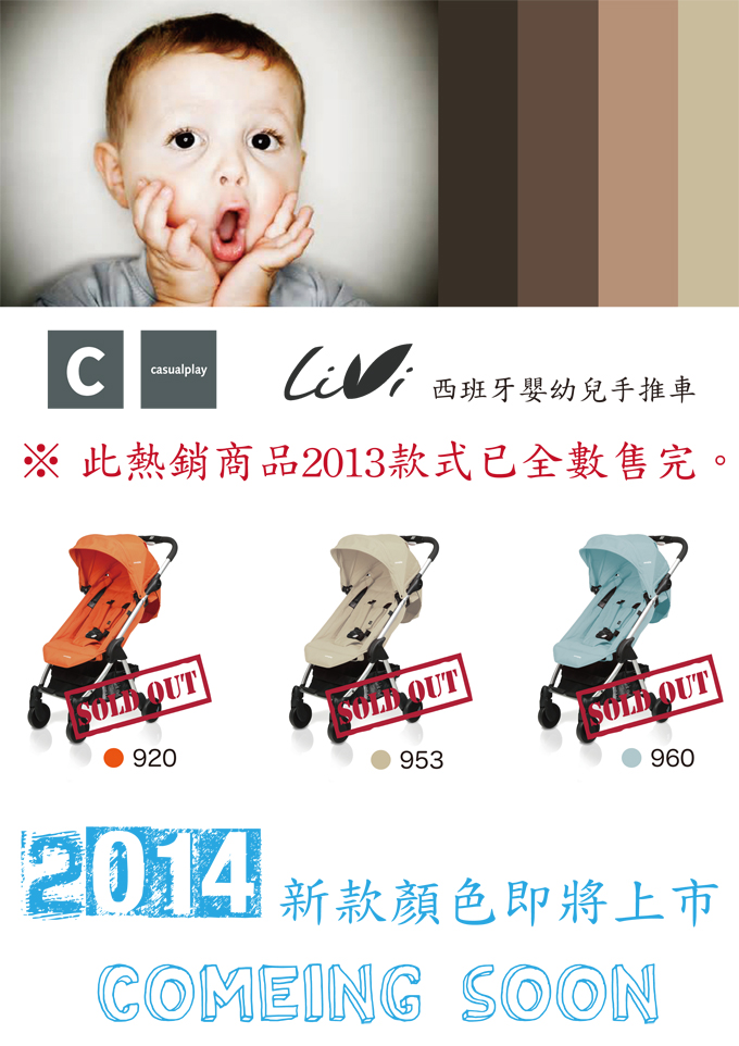 羽尉企業感謝大家的愛護與支持.CASUALPLAY西班牙-LIVI嬰幼兒手推車.2013款式已全數售完!2014新款顏色.即將上市COMEING SOON!