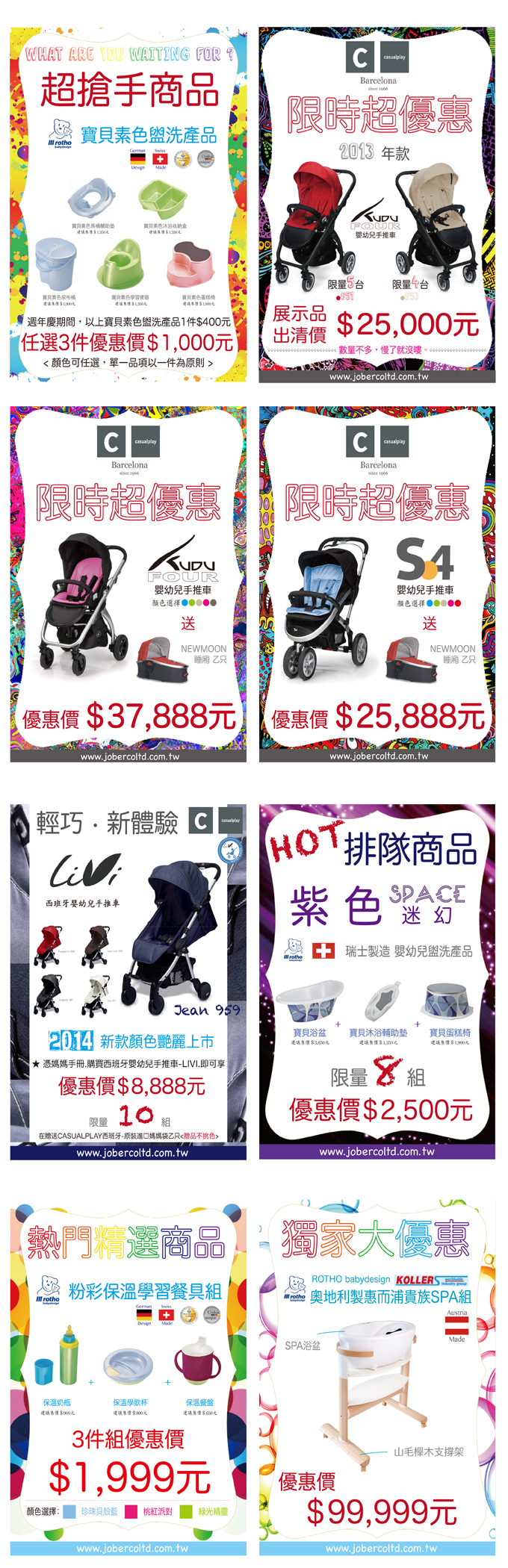 高雄.大立百貨週年慶11/07開打摟.爸比.媽咪們快到8樓JOBER專櫃替BABY選購新商品.週年慶期間眾多優惠商品只在JOBER專櫃.慢了就沒摟...!